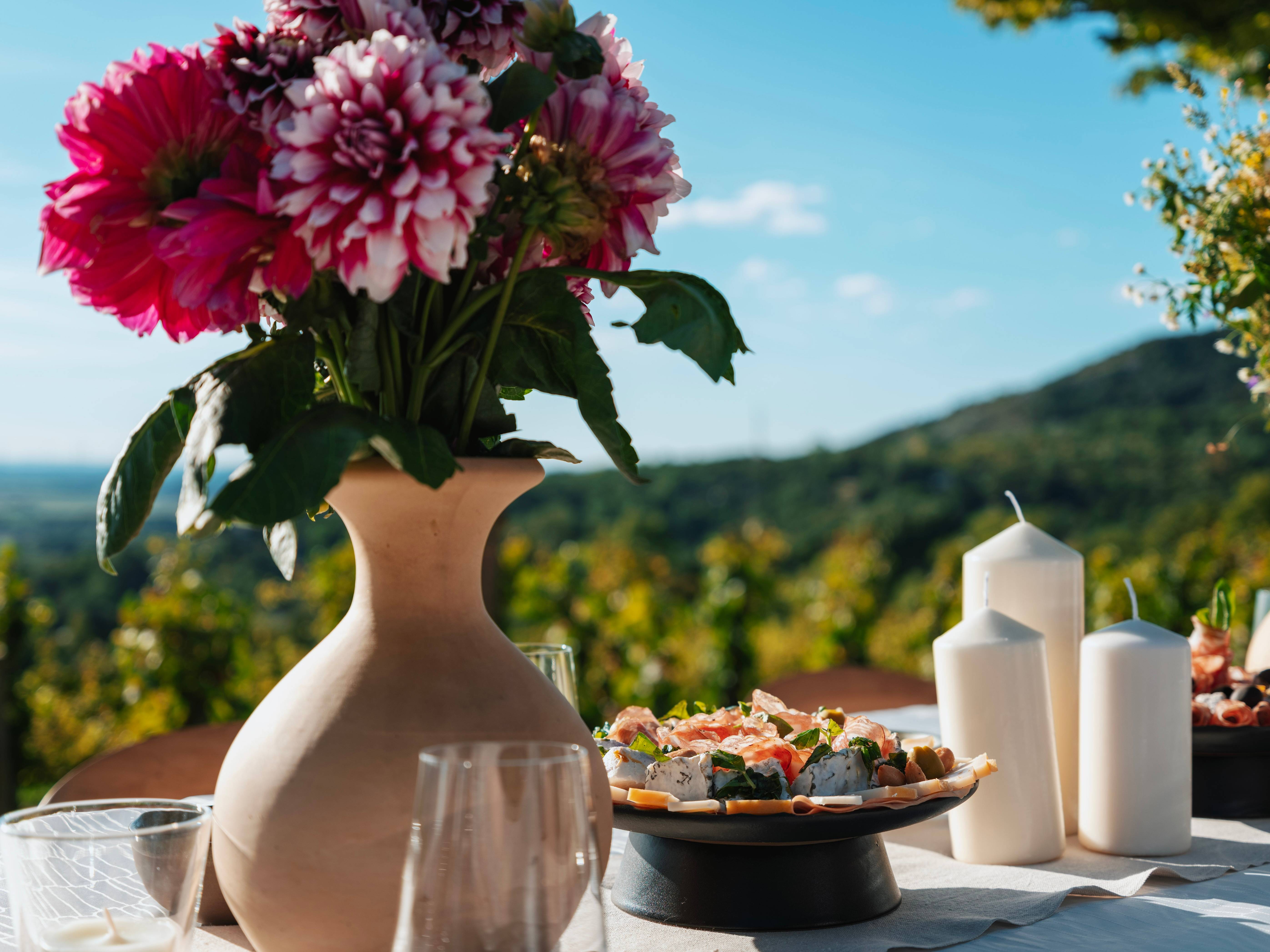 Pozývame vás na večeru, ktorá spája víno, prírodu a emóciu. Pod holým nebom, medzi viničom, vám naservírujeme výber našich vín a ľahké, no majstrovsky pripravené jedlá z reštaurácie ECK.